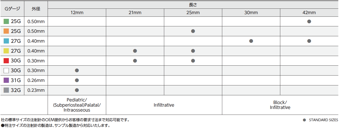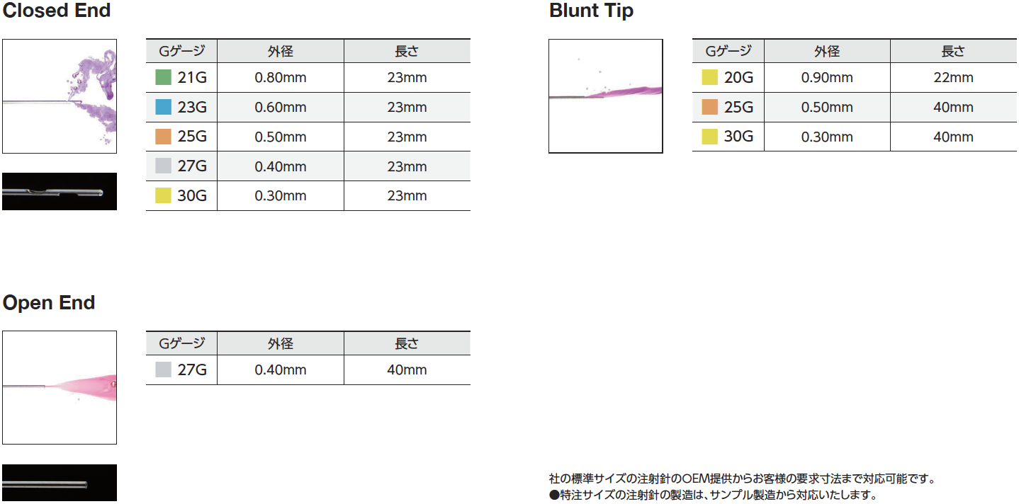 刃先が鋭く、独自のコーティング加工によって作られる注射針は、刺通抵抗が少なく「痛みを最小限に抑える」と海外で高い評価を受け、既に80か国の実績があります。さらに歯科用・眼科用の洗浄針やレジン充填用針は長年の歴史の中で歯科医師との共同開発で生まれた安全で使いやすい形状になっています。