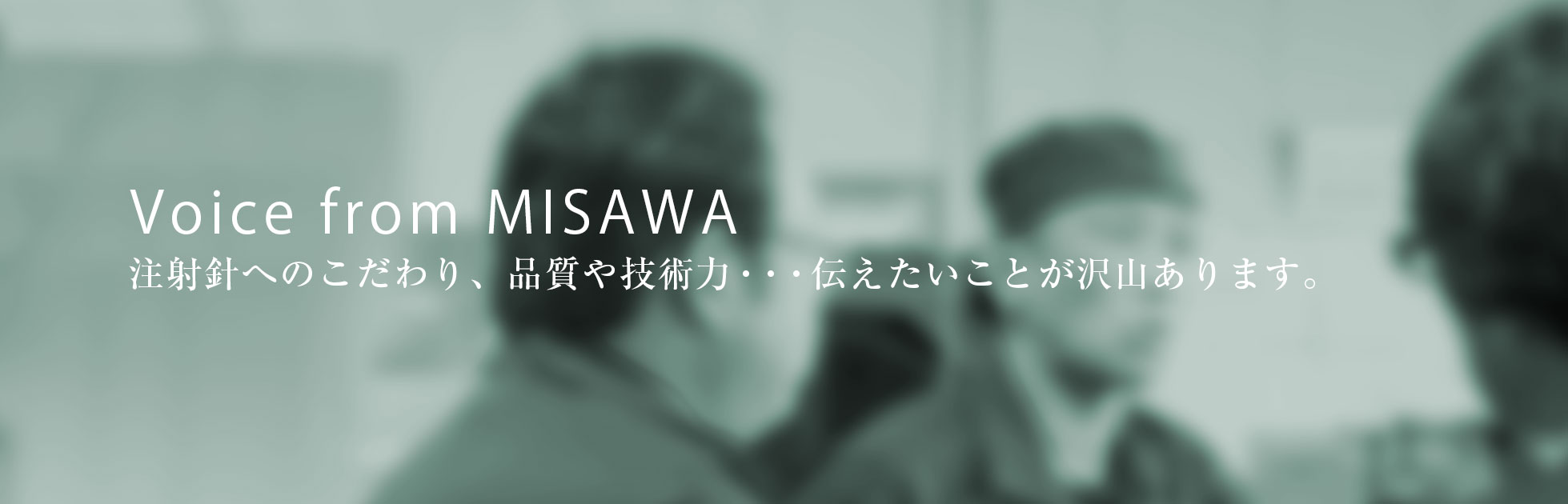 私は、最終工程で組み立てられた製品の抜き取り検査を行っています。針と針基との接着強度検査など何種類かの検査を行いますが、検査の中に、「人の皮膚の硬さ」に調整されたシリコンを使った注射針の刺通抵抗検査があります。当社は、「痛みを感じない針」の製造を創業以来目標にしており、出来上がった針が、刺通抵抗が少なく「当社の針」にふさわしい注射針か確認する当社独自の検査です。この検査に合格した注射針だけが世界各国に届けられています。私たちは注射針の針先の鋭さと独自のコーティング技術から生まれる「MISAWAの針」にとても自信を持っています。それだけに非常に大切な検査です。