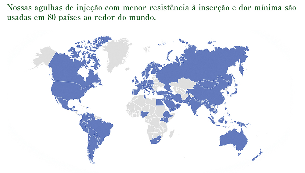 Atualmente, estamos fornecendo as agulhas de injeção que produzimos nos mercados em mais de 80 países ao redor do mundo.