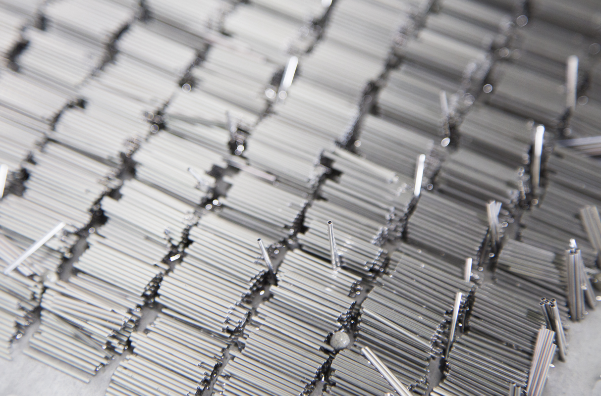 Fabrication into stainless steel tube The stainless steel tube from the tube manufacturing process is annealed to a hardness suitable for fabrication. Diameter and wall thickness are then adjusted to specification in the drawing process, the tube is passed through a straightening machine to produce a straight tube, which is then cut to length. Stainless steel tube is sampled at a rate of 6 in 5000. Five of the samples are inspected, and one retained in storage. |