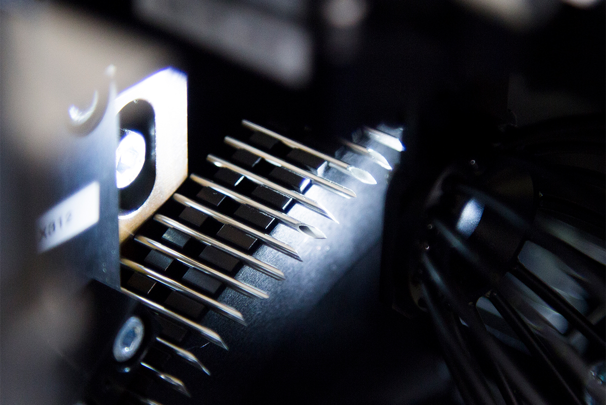 Assembly All assembly work is carried out in the clean room. All finally cleaned cannulas are inspected and sent to the assembly process. The cannula and hub are glued together in the assembly process, coated, and the cap attached. All processes are automated, and products without cannula and defective needles, as well as points (tip bend), are inspected for all needles. Assembled injection needles are inspected for adhesion strength and puncture resistance. Injection needles with low resistance to penetration resistance, and consequently less pain, are highly desirable in many countries, and are available as cannula and bulk products to suit customer requirements. Sampling inspection: Adhesive strength, puncture resistance, needle bending, appearance |